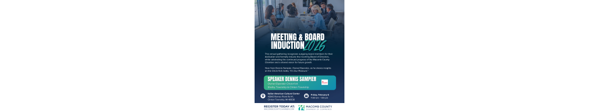 Join us at our 2026 Annual Meeting & Board Induction with guest speaker Dennis Sampier, Chick-fil-A owner (Shelby Township and Clinton Township).