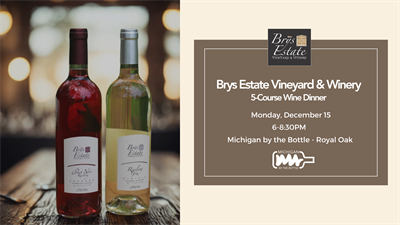 Brys Estate Vineyard & Winery Wine Dinner featuring Chef Chris Franz (formerly of Detroit’s acclaimed Rattlesnake Club). Five courses paired with Brys wines + 20% off featured wines! $90 | Dec. 15 | 6–8:30 PM | MBTB Royal Oak.