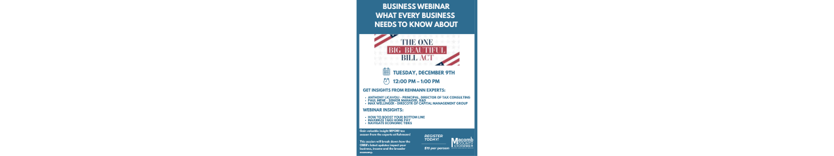 Join us for a focused webinar as experts from Rehmann break down the One Big Beautiful Bill and its impact on businesses. They’ll guide us through key takeaways and answer your questions during a live Q&A session.